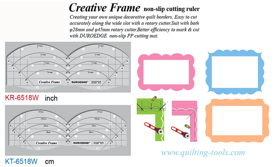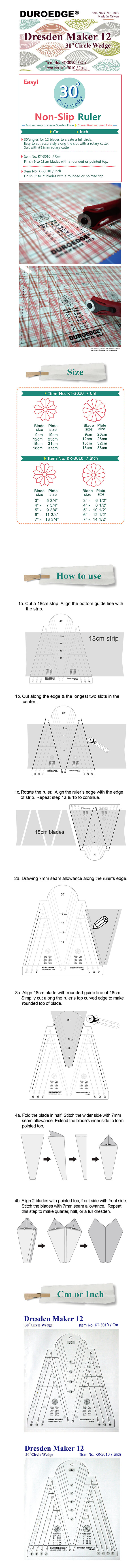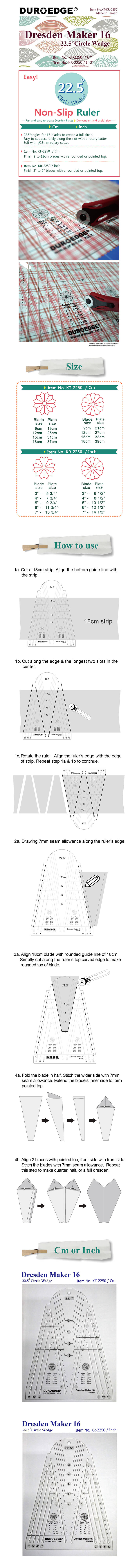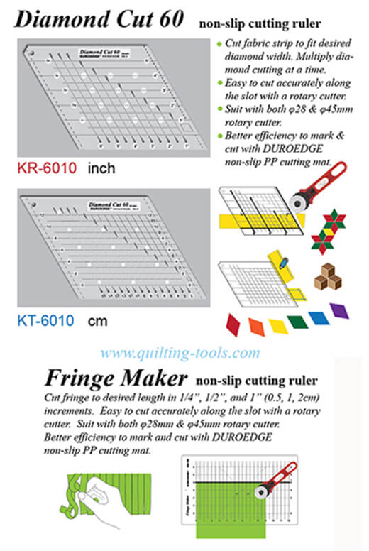 Tape Maker Pro PAT.P. non-slip cutting ruler Easy and quick for make 6mm, 12mm, 18mm, 25mm, & 50mm ( 1/4", 1/2", 3/4", 1", & 2”) bias strip. Ideal ruler length for cutting long bias strips. Accommodate both right & left-handed users.