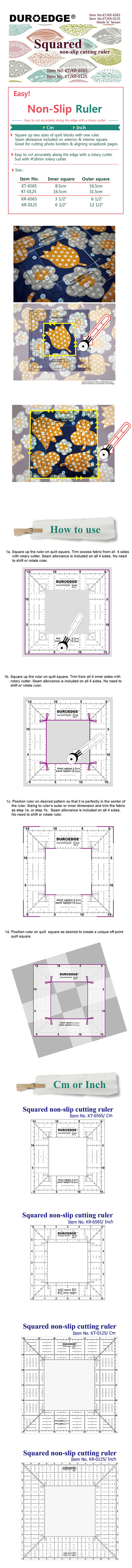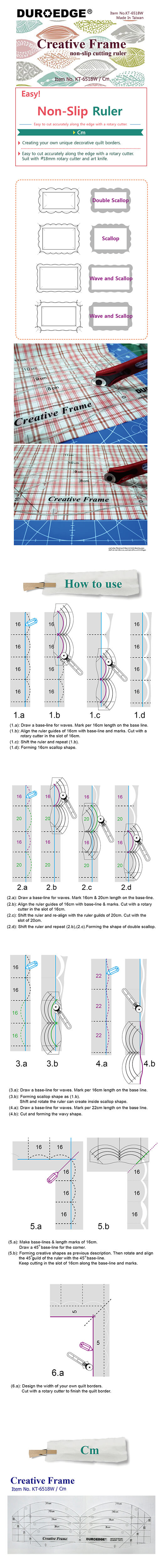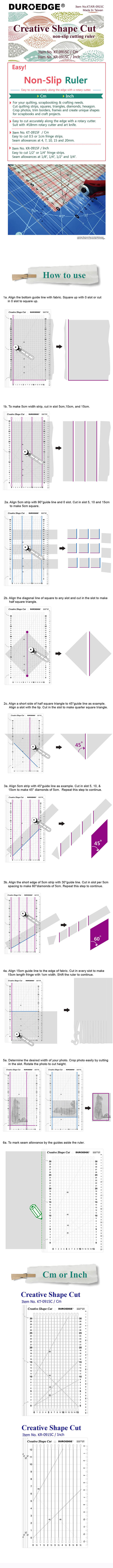 Non-slip quilting ruler can help to fix the fabric when drawing lines and cutting with a rotary cutter. It's easy to touch and feel the rough sandy non-slip area. Accurate ruler size, accurate lines printed, it is always easy to use on dark or light colored fabric with the special clear fluro material