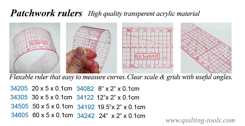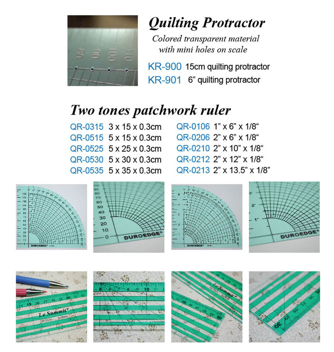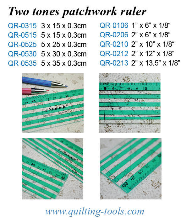 Tape Maker Pro PAT.P. non-slip cutting ruler Easy and quick for make 6mm, 12mm, 18mm, 25mm, & 50mm ( 1/4", 1/2", 3/4", 1", & 2”) bias strip. Ideal ruler length for cutting long bias strips. Accommodate both right & left-handed users.