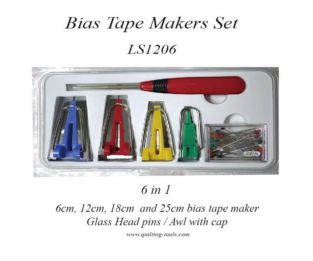 Tape Maker Pro PAT.P. non-slip cutting ruler Easy and quick for make 6mm, 12mm, 18mm, 25mm, & 50mm ( 1/4", 1/2", 3/4", 1", & 2”) bias strip. Ideal ruler length for cutting long bias strips. Accommodate both right & left-handed users.